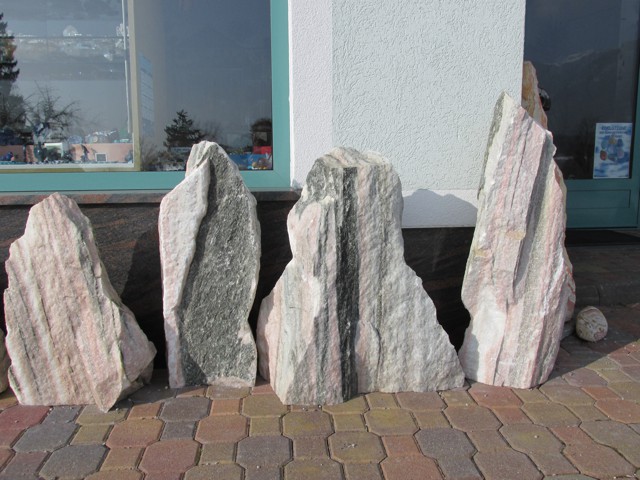 Eine große Auswahl an Steinen in vielen Größen lagernd, auch mit Bohrung für Brunnen